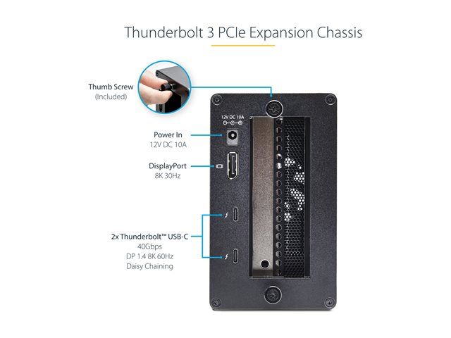 StarTech.com Thunderbolt 3 PCIe Expansion Chassis, Enclosure Box W/Dual PCI-E Slots, External PCIe Slots for Laptops/Desktops/All-In-Ones, 8K/4K Output Via TB3/DP 1.4 Ports
