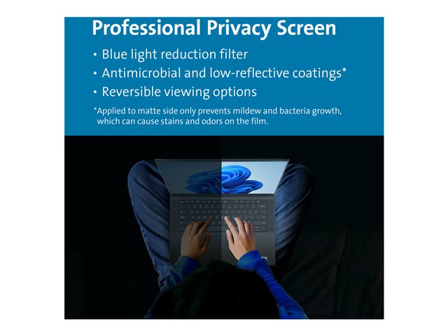 Avec son design ajusté et ses performances exceptionnelles, le filtre de confidentialité magnétique MagPro pour ordinateurs portables 16" (16:10) se fixe et se retire aisément, tout en permettant aux ordinateurs portables ultra-fins de se fermer complètement et d'entrer en veille. Réduit le champ de vision à ± 30° pour renforcer la sécurité visuelle et empêcher toute personne non autorisée de les examiner, au bureau comme dans un lieu public. Une découpe pour webcam garantit une expérience de visioconférence fluide. Grâce à la réduction de la lumière bleue, les rayons nocifs sont filtrés jusqu'à 30 %, ce qui réduit la fatigue visuelle et évite la perturbation de vos cycles de sommeil. Le filtre réversible inclut un revêtement antireflet afin d'optimiser la clarté des informations à l'écran. Le filtre est doté d'un côté mat qui réduit les reflets et les traces de doigts, tandis que le côté brillant offre une meilleure visibilité de l'écran. La fixation magnétique brevetée est pratique et évite l'utilisation d'adhésifs qui pourraient endommager l'appareil. Garantie limitée de 2 ans incluse.
