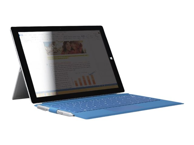 Protégez vos données des regards indiscrets! Que ce soit lors de vos voyages d'affaire, en train, en avion, ou tout simplement au sein d'espaces partagés, ou chez vos clients/fournisseurs, protégez vos données en toutes circonstances grâce à ce filtre de confidentialité. Il conserve le caractère confidentiel des informations affichées sur l'écran. Celles-ci restent clairement visibles par l'utilisateur de la Surface Pro3, mais les personnes situées plus à droite ou plus à gauche ne voient qu'un écran noir. Angle de non vision: 30°.