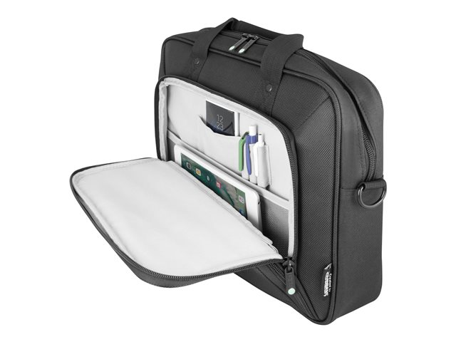 Cette sacoche possède un compartiment dédié pour votre ordinateur portable jusqu'à 15,6" sécurisé par un une sangle de maintien et un compartiment dédié à votre tablette jusqu'à 10.5". Vous pouvez aussi transporter tous vos accessoires et vos documents grâce à son compartiment organiseur. La poche extérieure conçue pour ranger l'alimentation externe de votre Notebook vous offrira un gain de place supplémentaire à l'intérieur de la sacoche.