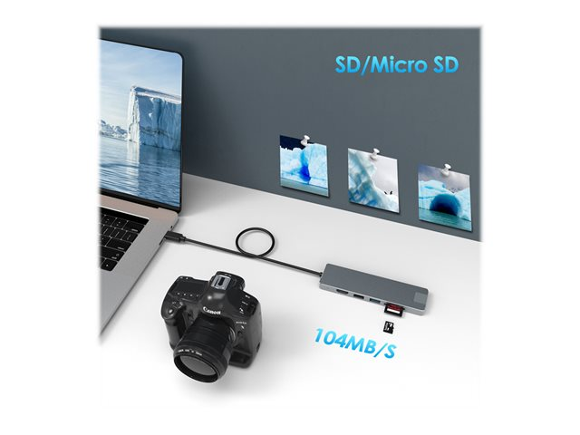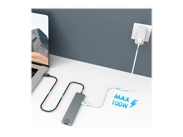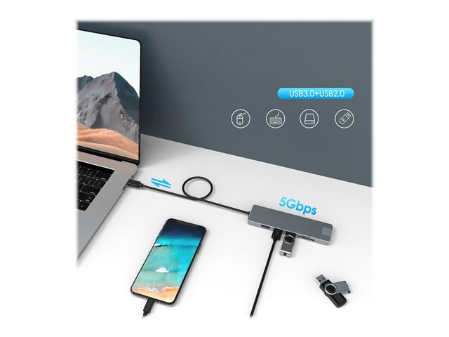 Description du produit DLH Energy DY-TU4705 - station d'accueil - USB-C - HDMI - 1GbE Type de Produit Station d'accueil Interface de station d'accueil USB-C Interfaces vidéo HDMI Dimensions (LxPxH) 13.2 cm x 3.6 cm x 1.1 cm Poids 78 g Réseaux Gigabit Ethernet Garantie du fabricant Garantie de 2 ans -