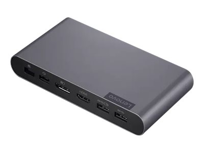 Conçue pour les professionnels modernes, la station d'accueil Lenovo USB-C Universal Business Dock a tout ce qu'il faut pour vous aider à faire passer votre productivité au niveau supérieur. Avec une extension de port améliorée, une alimentation optimale et la prise en charge d'un double écran dans un extérieur élégant et peu encombrant, la station d'accueil est le compagnon idéal pour les espaces de travail hybrides. Les stations d'accueil Lenovo USB-C et Thunderbolt fonctionnent avec les ordinateurs portables qui prennent en charge les protocoles USB-C Alt-Mode ou Thunderbolt par le biais de leur port de type C.