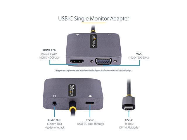 USB C Display Travel Adapter (122-USBC-HDMI-4K-VGA) - station d'accueil - USB-C / Thunderbolt 3 / Thunderbolt 4 - VGA, HDMI