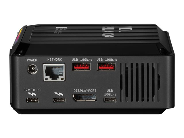 Transformez votre ordinateur portable en une station de jeu entièrement intégrée, en éliminant l'encombrement grâce à un seul cordon Thunderbolt 3 et à plusieurs ports pour connecter aisément vos appareils. Vous profitez ainsi de vitesses élevées grâce à la technologie NVMe et d'une capacité supérieure pour vos jeux.