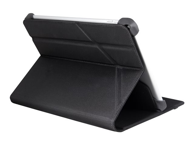 Le portfolio est doté d'un emplacement dédié pour un stylet / stylo, donne accès à tous les connecteurs et appareils photos de la tablette et se positionne en mode chevalet afin de visionner confortablement vos films et séries.