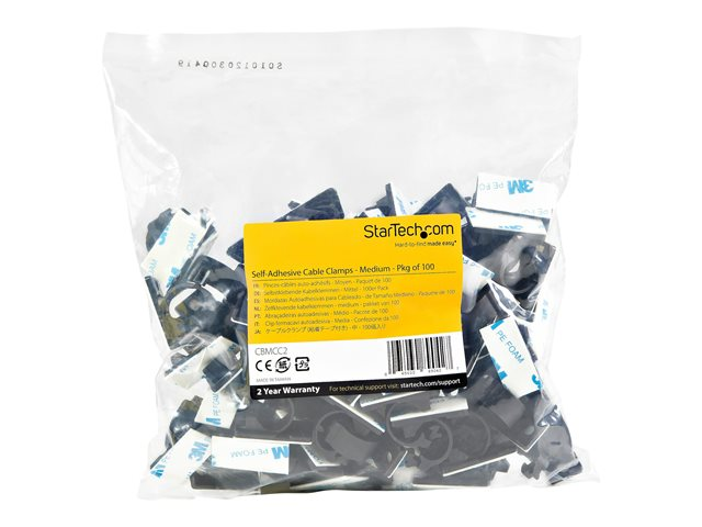 StarTech.com 100 Pinces Attache Câbles Adhésives Noir, Organiseur Câbles Réseau/Ethernet/Bureau/Ordinateur, Range Câbles Bureau Autocollant, Pince Nylon Autocollante Ignifugée UL/94V-2 (CBMCC2)