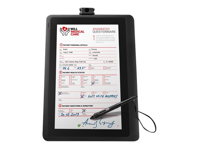 Doté d'un écran LCD 15,6? à résolution Full HD, le Wacom DTK-1660E est un écran interactif haut de gamme qui permet aux entreprises de créer un flux de travail sans papier optimal pour les interactions client. Avec un chiffrement des données de pointe et 8 192 niveaux de sensibilité à la pression du stylet numérique qui permettent la capture de signatures électroniques biométriques, les organisations sont en mesure de fournir l'expérience de signature électronique et d'écriture la plus familière et la plus sécurisée qui soit. Le DTK-1660E combine également un design moderne et fin avec une utilisation exceptionnellement pratique en mode portrait ou paysage pour un confort utilisateur maximal.