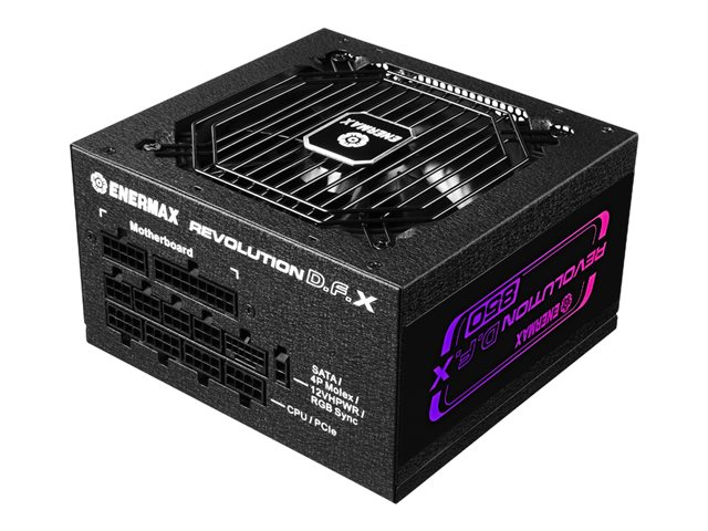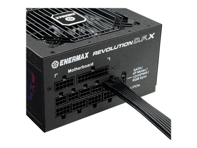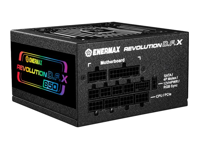 Description du produit Enermax Revolution D.F. X - alimentation électrique - entièrement modulaire - 850 Watt Type de périphérique Alimentation électrique - interne Conformité aux spécifications ATX12V 3.0 Certification 80 PLUS 80 PLUS Gold Tension d'entrée CA 100-240 V Tension de sortie +3.3, +5, ±12 V Capacité d'alimentation 850 Watt Courant électrique de sortie +5V - 20 A