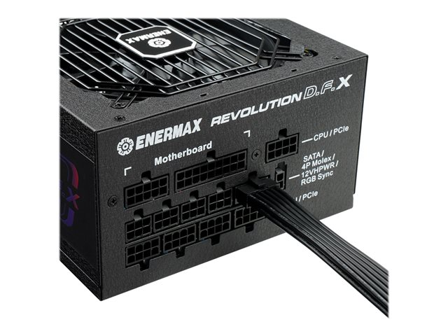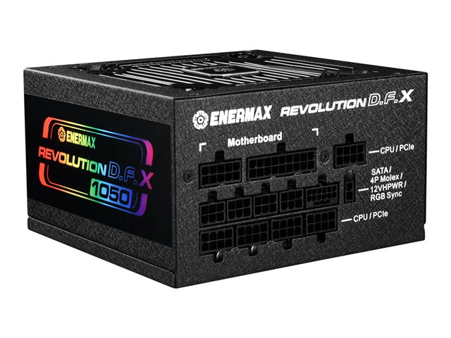 Description du produit Enermax Revolution D.F. X - alimentation électrique - entièrement modulaire - 1050 Watt Type de périphérique Alimentation électrique - interne Conformité aux spécifications ATX12V 3.0 Certification 80 PLUS 80 PLUS Gold Tension d'entrée CA 100-240 V Tension de sortie +3.3, +5, ±12 V Capacité d'alimentation 1050 Watt Courant électrique de sortie +5V - 20 A