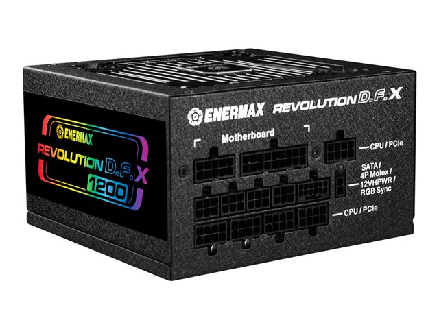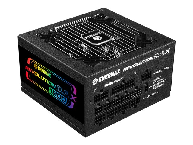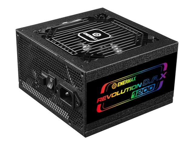 Description du produit Enermax Revolution D.F. X - alimentation électrique - entièrement modulaire - 1200 Watt Type de périphérique Alimentation électrique - interne Conformité aux spécifications ATX12V 3.0 Certification 80 PLUS 80 PLUS Gold Tension d'entrée CA 100-240 V Tension de sortie +3.3, +5, ±12 V Capacité d'alimentation 1200 Watt Courant électrique de sortie +5V - 20 A
