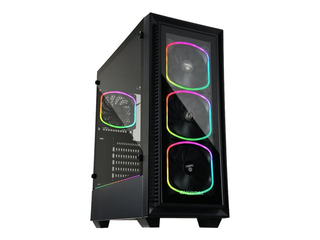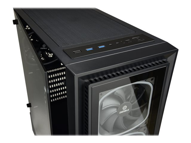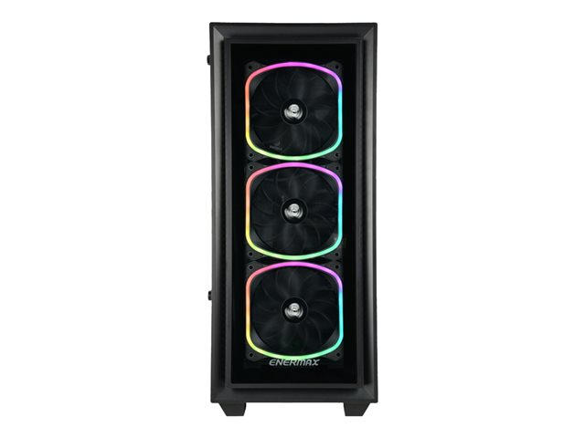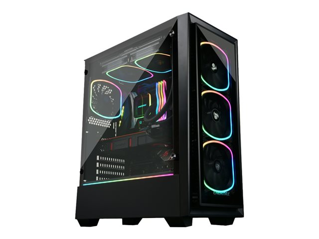 Le boîtier gaming RGB StarryFort (SF30) d'Enermax est habillé de 4 ventilateurs SquA RGB adressables préinstallés et d'une bande latérale LED RGB. La paroi latérale panoramique et la façade en verre trempé offrent une vue dégagée sur les composants installés, ce qui la rend idéale pour les configurations mises en valeur par un éclairage RGB. Le hub RGB intégré du StarryFort peut contrôler jusqu'à 6 dispositifs RGB adressables, ou bien se synchroniser avec les logiciels des cartes-mères RGB Ready. La partie latérale basse cachant l'alimentation, et une cage pour disque dur amovibles facilitent l'installation et la gestion des câbles. Le StarryFort offre enfin un large support pour les refroidisseurs liquides en 120, 140, 240, 280 et 360mm.