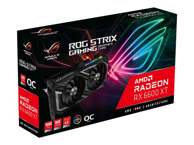 Description du produit ASUS ROG-STRIX-RX6600XT-O8G-GAMING - OC Edition - carte graphique - Radeon RX 6600 XT - 8 Go Type de périphérique Carte graphique Type de bus PCI Express 4.0 Moteur graphique AMD Radeon RX 6600 XT Mémoire 8 Go GDDR6 Vitesse de la mémoire 16 Gbits/s Horloge boostée 2607 MHz Processeurs de flux 2048 Interface mémoire 128-bit Résolution maximale 7680 x 4320 Nombre maximum de moniteurs 4 Détails d'interface HDMI