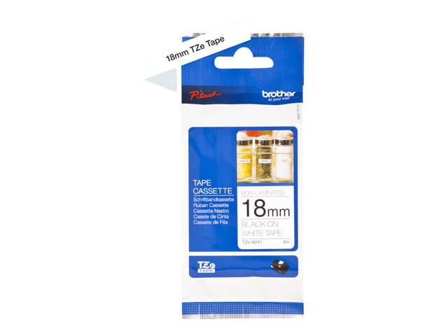 Ce ruban TZe-N241 de 18 mm de large est idéal pour vos tâches générales d'étiquetage au bureau, sur le lieu de travail ou à la maison.