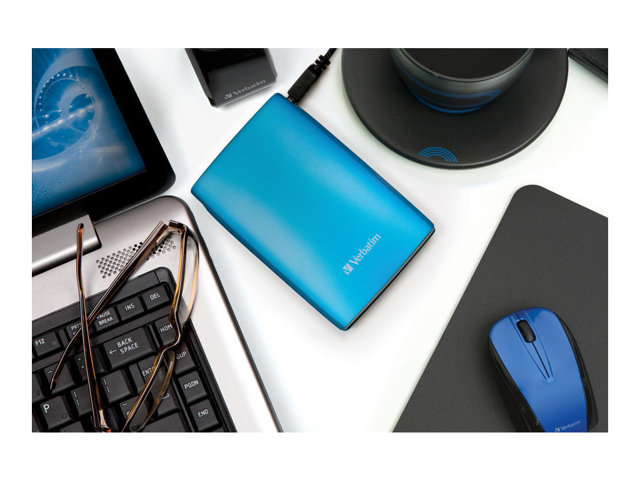 Le disque dur portable Verbatim Store 'n' Go est une solution de stockage hautes performances qui utilise une interface USB 3.0 haute vitesse. La norme USB 3.0 permet d'atteindre des débits multipliés par 10 par rapport à l'USB 2.0 (sur la base de mesure de la vitesse de bus USB), vous offrant un taux de transfert de données ultra-rapide.