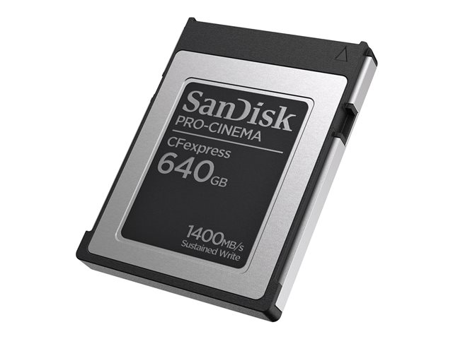 Description du produit SanDisk PRO-CINEMA - carte mémoire flash - 640 Go - CFexpress de type B Type du Produit Carte mémoire flash Format Carte CFexpress de type B Capacité de stockage 640 Go Garantie du fabricant Garantie limitée à vie -