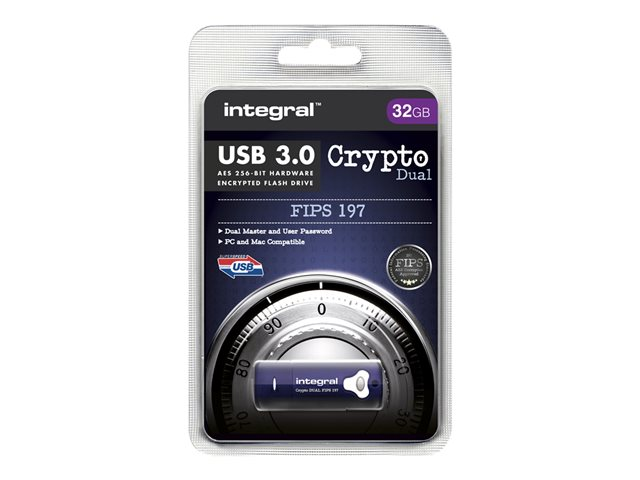Description du produit Integral Crypto Dual FIPS 197 - clé USB - 32 Go Type du Produit Clé USB Type d'Interface USB 3.0 Capacité de stockage 32 Go Cryptage matériel Oui Algorithme de chiffrement AES 256 bits, FIPS 197 Système d'exploitation requis Apple MacOS X, Microsoft Windows Vista / XP / 7 / 8, Windows 10 Garantie du fabricant Garantie de 2 ans -