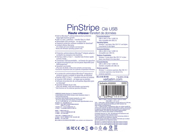 Dans ce design Pinstripe plus léger, différentes capacités de stockage sont disponibles pour la version USB 3.0 de la PinStripe, devenant le parfait outil, adaptée aux besoins de tous pour transporter facilement vos données quotidiennes.