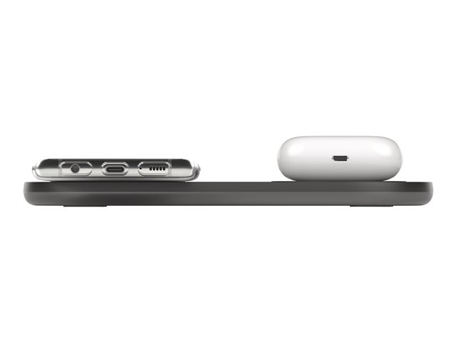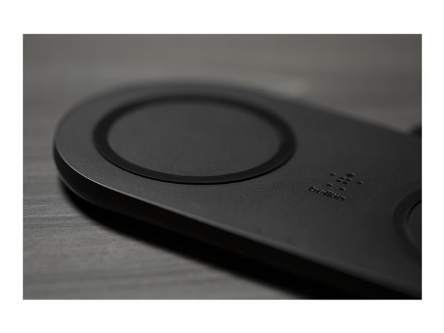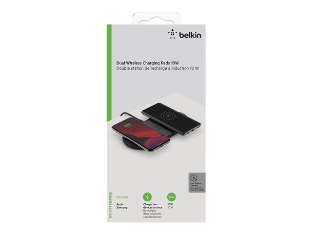 N'attendez plus qu'un appareil soit chargé pour recharger le vôtre. Tirez parti de tous les avantages de la technologie de recharge sans fil leader du marché pour recharger deux appareils en simultané. La double station de recharge à induction BOOST?CHARGE vous permet de libérer de l'espace sur votre comptoir ou bureau. Compatible iOS et Android, elle constitue la solution parfaite pour les collègues de travail ou familles qui utilisent plusieurs appareils différents. Le revêtement antidérapant maintient vos appareils en place pendant la recharge. Le témoin lumineux LED permet de vous indiquer lorsqu'ils sont posés correctement sur la station.