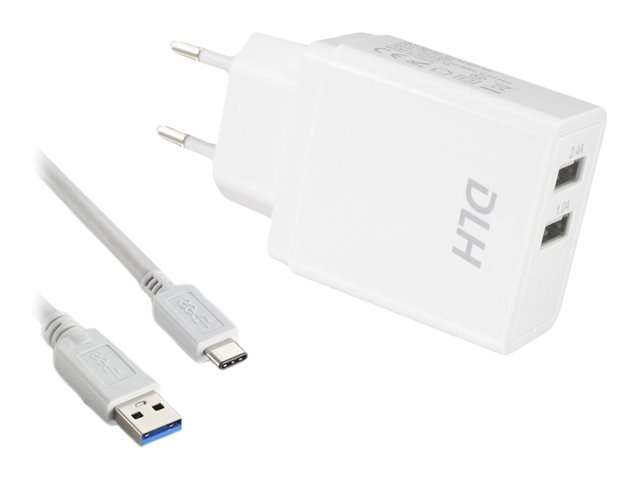 12 Watt - 2.4 A - 2 connecteurs de sortie (USB) - sur le câble : USB-C - blanc