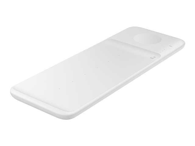 Description du produit Samsung Wireless Charger Trio EP-P6300 plot de charge sans fil - + adaptateur secteur Type de Produit Plot de charge sans fil + adaptateur secteur Dimensions (LxPxH) 24 cm x 8.6 cm x 1.55 cm Poids 320 g Couleur Blanc Tension requise 9 V Technologie de charge rapide Fast Charge Normes de recharge sans fil Qi, Fast Wireless Charging Câbles Câble USB-C - 1 m Conçu pour Galaxy Buds Live, Buds+, Note10, Note20, Note5, Note8, Note9, S10, S10 5G, S10+, S10e, S20, S20 5G, S20+, S20+ 5G, S6, S7, S8, S8+, S9, S9+, Watch 3, Watch Active, Watch Active 2, Z Flip, Z Flip 5G, Z Flip4, Z Fold2 5G, Z Fold4 -