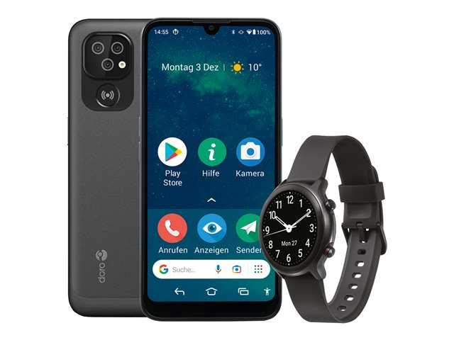 RAM 2 Go / Mémoire interne 32 Go - microSD slot - 6.1" - 1560 x 720 pixels - 3 x caméras arrière 13 MP, 2 MP, 2 MP - front camera 5 MP - avec Montre Doro noire - gris