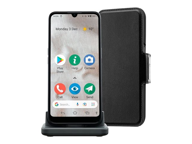 Le smartphone facile à utiliser et à adopter avec son socle chargeur et son élégant étui-portefeuille.