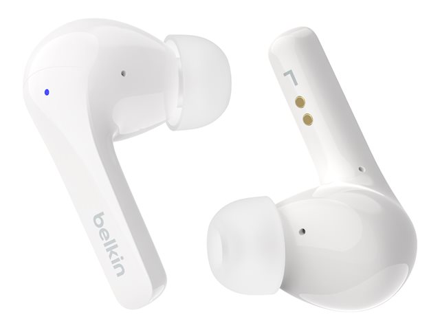Profitez au maximum de vos trajets, de vos entraînements et de votre temps libre grâce à des écouteurs sans fil véritables, dotés d'un couplage et de commandes Bluetooth transparents. Les haut-parleurs de 12 mm et les 3 préréglages d'égalisation offrent le son Belkin Signature pour une expérience audio personnelle de haute fidélité.