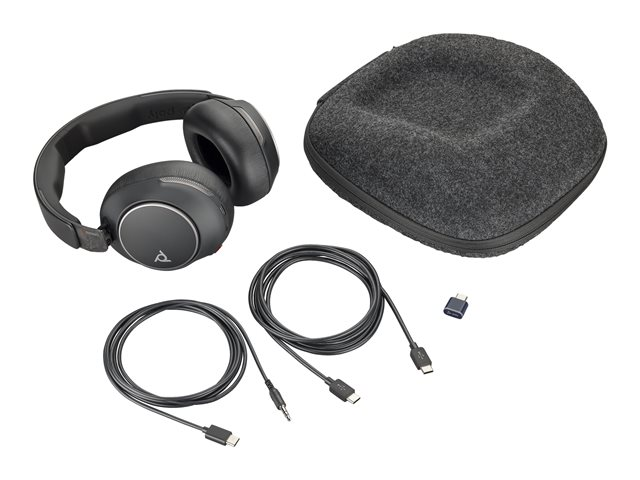 Voyager Surround 80 series - micro-casque - circum-aural - Bluetooth - sans fil - Suppresseur de bruit actif - USB-C via un adaptateur Bluetooth - noir - certifié pour Microsoft Teams Open Office