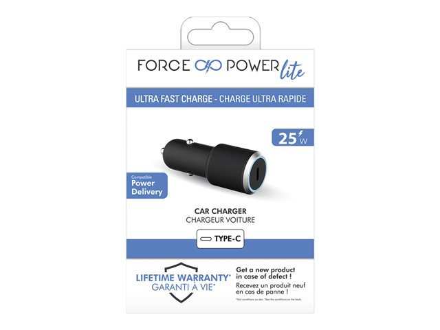 Adaptateur d'alimentation pour voiture - 25 Watt - PD (24 pin USB-C) - noir