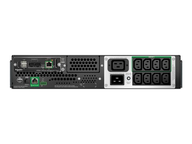 Onduleur (rack-montable) - interactif en ligne, 8x IEC C13, 1x IEC C19, SmartConnect+SmartSlot, AVR, LCD, avec carte de gestion de réseau - CA 220/230/240 V - 1980 Watt - 2200 VA - USB, serial, RJ-45 - connecteurs de sortie : 9 - 2U - noir avec lunette avant argentée