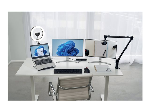 Professionnelle et abordable, la webcam W1050 1080p avec grand angle et mise au point fixe de Kensington offre des vidéos de haute qualité (1080p à 30 ips), deux micros omnidirectionnels, des fonctionnalités uniques pour la confidentialité, le positionnement de caméra et un meilleur traitement de l'image dans des conditions de faible éclairage. Pensée pour vous mettre en valeur lors de vos visioconférences, la W1050 fait partie de l'écosystème de visioconférence professionnelle de Kensington, une expérience puissante et unifiée des logiciels et des accessoires qui vous permet de passer plus de temps à collaborer. Que vous travailliez à la maison ou au bureau, que vous deviez intégrer plus de personnes dans le cadre, que vous enseigniez ou étudiiez, la W1050 améliore vos présentations sur Microsoft Teams, Google Meet, Zoom et bien d'autres encore.