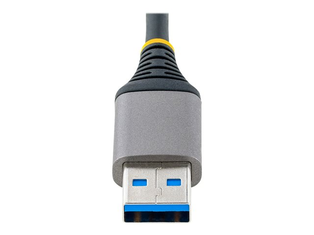 Ce hub USB ajoute trois ports USB-A 3.2 Gen 1 (5Gbps) et un port Gigabit Ethernet à un ordinateur de bureau ou portable compatible USB-A. Le hub USB se connecte à un port USB-A sur un ordinateur, à l'aide du câble hôte intégré de 30 cm. Le hub USB est rétrocompatible avec les périphériques USB 2.0 (480Mbps), ce qui garantit la prise en charge d'une large gamme de périphériques USB modernes et anciens (par exemple, les clés USB, les disques durs/SSD externes, les caméras HD, les souris, les claviers, les webcams et les casques audio).Le hub USB est de taille compacte, ce qui facilite sa portabilité lors des déplacements.