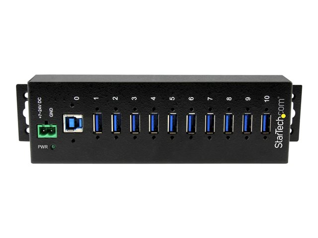 10 ports - Industriel Concentrateur USB - Avec protection contre surtensions/DES - Métal - Rail DIN - Alimenté - Concentrateur (hub) - 10 x SuperSpeed USB 3.0 - Montage sur rail DIN - Tension CC - pour P/N: ITB20D3250, USB312SAT3CB, USB315CB2M, USBLT1MWS, USBLT2MBR, USBLTM1MBK, USBLTM1MWH
