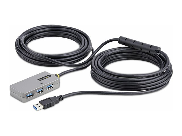 StarTech.com USB Extender Hub, 10m USB 3.0 Extension Cable with 4-Port USB Hub, Active/Bus Powered USB Repeater Cable, Optional 20W Power Supply Included