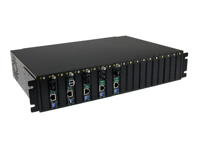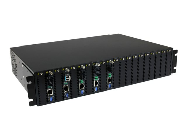 Pour plus de polyvalence, ce convertisseur Ethernet fibre optique permet un fonctionnement autonome ou une installation dans le châssis monté en rack 2U à 20 fentes (ETCHS2U), ainsi que dans une fente SFP remplaçable.
