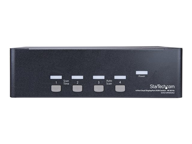 StarTech.com Switch KVM double affichage DisplayPort 4K 60 Hz à 4 ports avec hub USB 2.0 intégré
