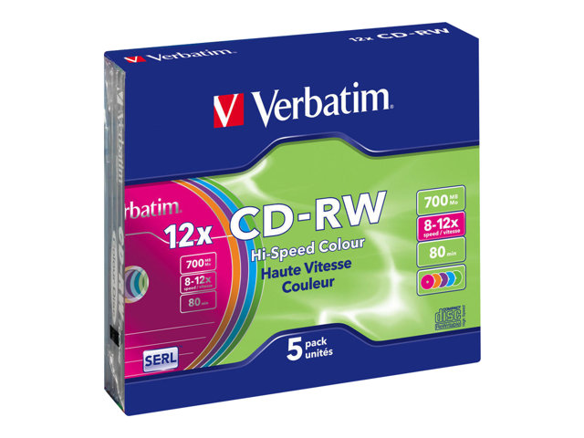 5 x CD-RW - 700 Mo (80 min) 8x - 12x - boîtier CD étroit